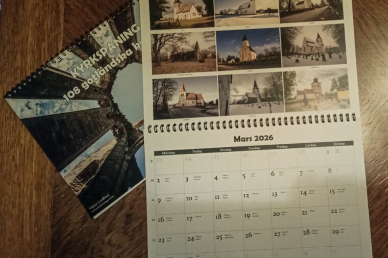 Mina kyrkspaningar på Gotland har nu blivit en kalender för 2026 med foton på alla de 108 medeltida kyrkor och kyrkoruiner som fortfarande är en synlig del av det gotländska landskapet. Den finns att köpa på Wessman & Petterssons bokhandel i Visby, eller direkt från mig (skicka PM). Pris: 189 kr/st. + ev. frakt på 66 kr.